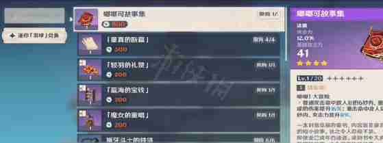 嘟嘟可故事集需要玩家用800枚「亮闪闪的漂流 物」兑换,「童真的断篇」是嘟嘟可故事集的精炼材料,兑换一个需要500枚「亮闪闪的漂流物」,可以兑换4次,让嘟嘟可故事集精炼5。