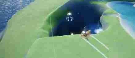 线索提示在瀑布右侧下方,点燃蜡烛之后壁画傍边会显示编钟也在一个瀑布的下方。我们网瀑布下游走,会看到飘荡的发光水母,跳入洞内,就会看到一个小瀑布和瀑布旁的钟。