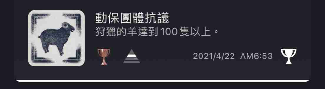 玩耍其中一个奖杯「动保团体抗议」要求玩家杀100只以上绵羊,注重是绵羊而不是山羊,绵羊可以在北方平原找到,数量非常多。在击杀后对着羊按?剥取,高几率获得【羊肉】,低几率获得【羊毛】。