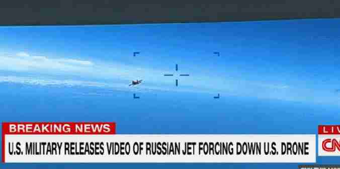 报道还称,当俄罗斯苏-27战斗机再次靠近时,又一次“倾倒燃料”。随后,俄罗斯苏-27战斗机与米国MQ-9“死神”无人机“相撞”,导致螺旋桨受损,无人机的视频也由此中断。不过,CNN同时指出,俄罗斯否认发生了“碰撞”。