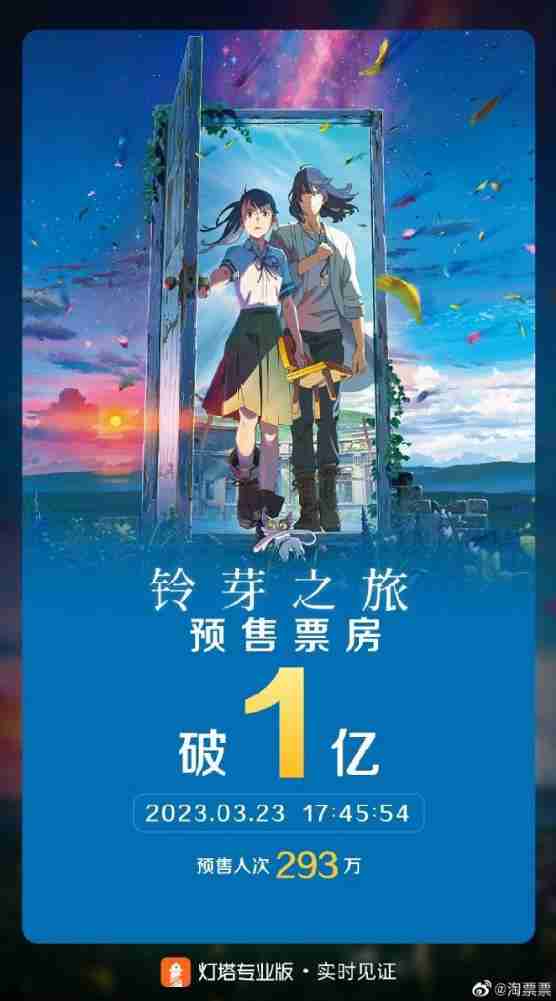 电影《铃芽之旅》预售票房破亿,导演新海诚3月23日晚间也公布动态,“很荣幸大家期待这部作品,请观赏明天的放映!”