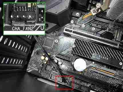7日,发现主板“CHA_FAN”界面,插入风扇里面的线路可以供给。