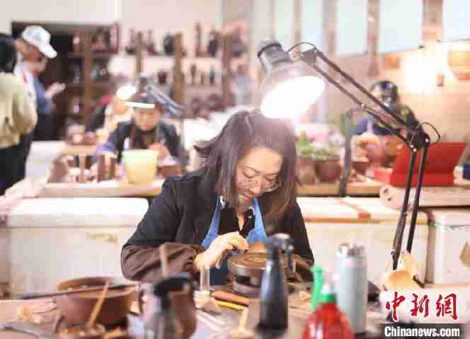 图为手工艺人正在为陶器抛光。 李可怡 摄