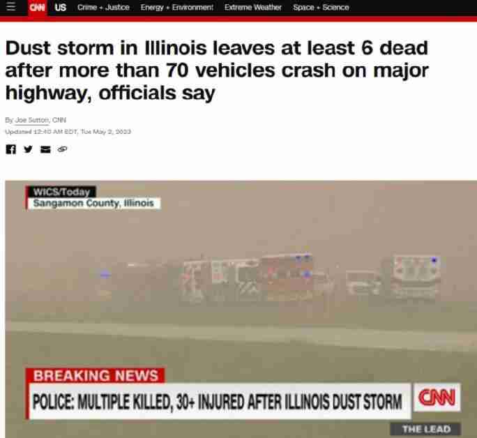 沙尘暴袭击!米国超过70辆汽车相撞,造成6人死亡