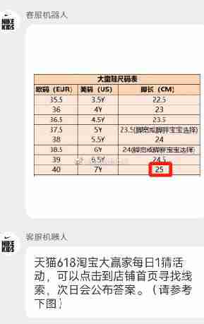 以上就是淘宝每日一猜耐克儿童鞋最大参考脚长是的答案,答案是25,盼望能够有所帮助。更多相关攻略和资讯可以关注游侠手游,之后将为大家带来更多出色内容。