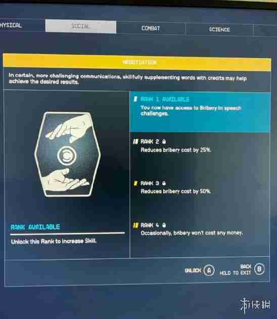 3.全部技能共分为5大类别:肉体、社交、战斗、科学、技术