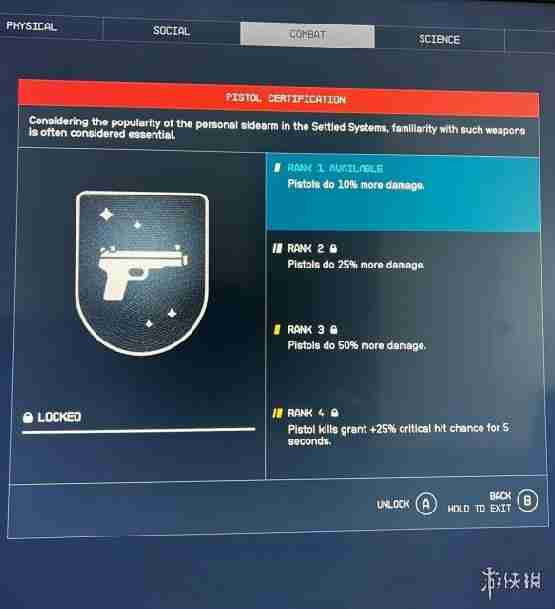↑增加手枪损害的技能,4级还有增加暴击率的效果