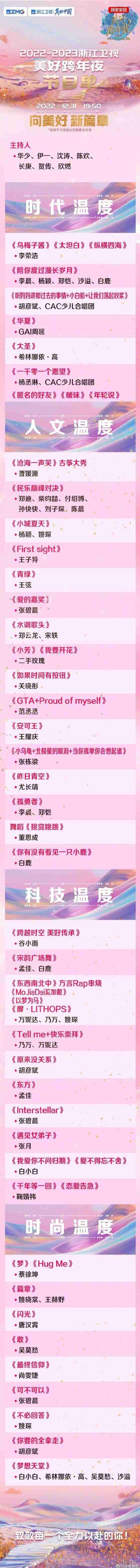 浙江卫视2023年跨年晚会节目单